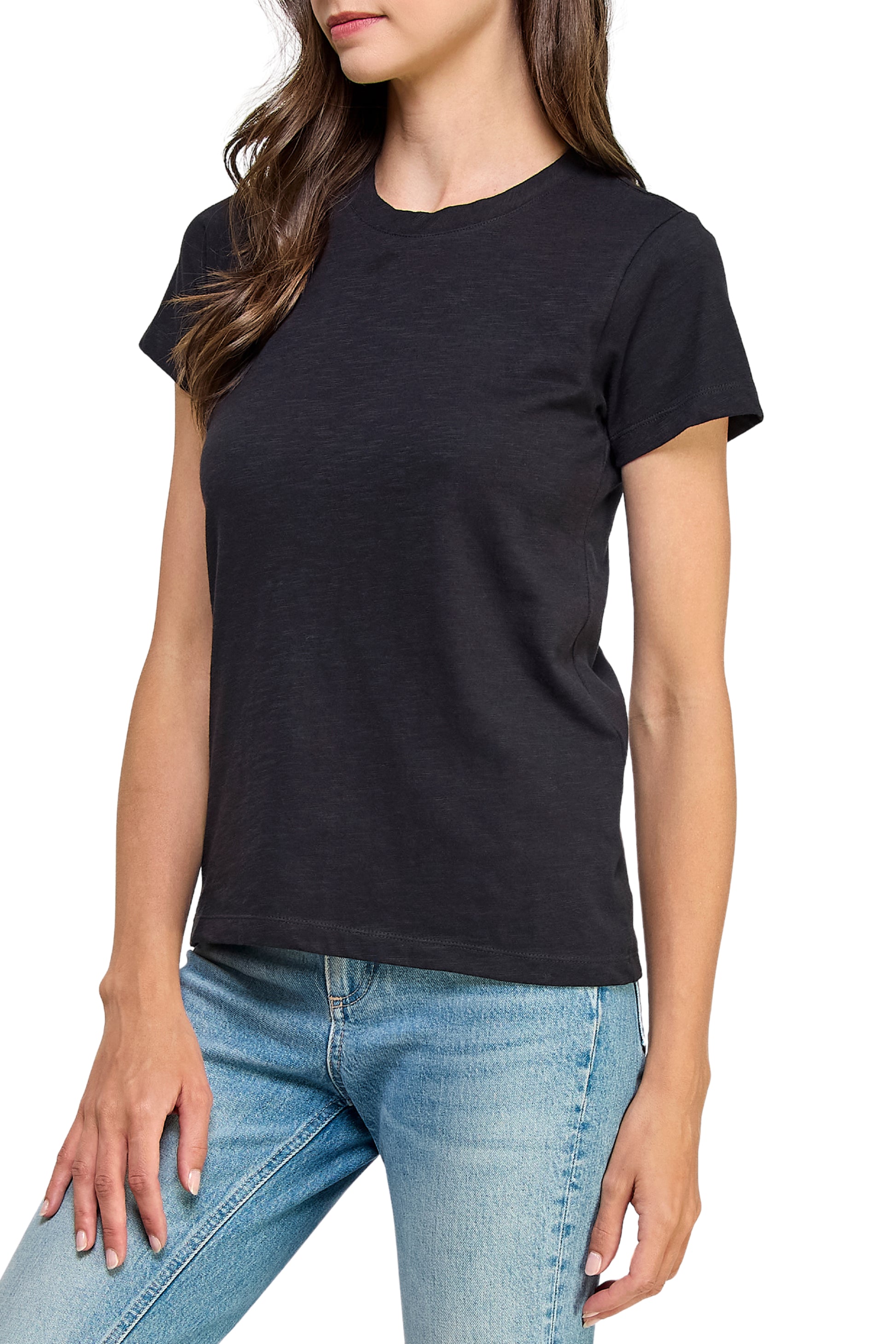 Women's GOTS Certified 100% Organic Cotton Black Slub Crewneck T Shirt Short Sleeve Tee Tops